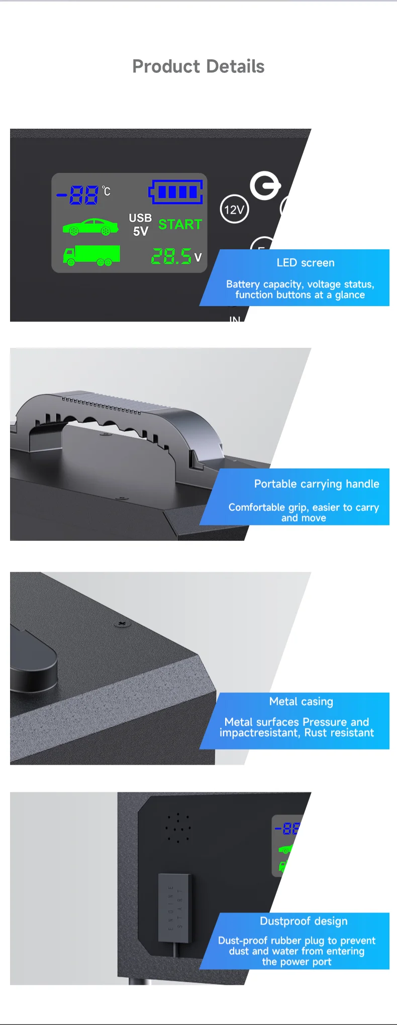 12V 24V Portable Lithium Jump Starter 6000A,Car Battery Booster,USB-C Powerbank Charger,For up to 20L Gas and 16L Diesel Engines